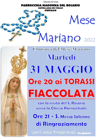 Chiusura del Mese mariano – 31/5/22 Ore 20 ai Torassi Condividi: Fai clic per condividere su X (Si apre in una nuova finestra) X Fai clic per condividere su Facebook (Si apre in una nuova finestra) Facebook Mi piace Caricamento... I commenti sono chiusi.