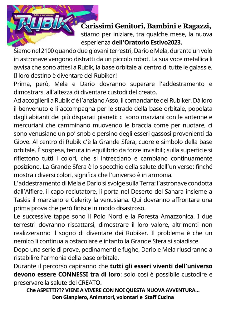 Oratorio Estivo 2023 Programma oratorio-estivo-2023Download Condividi: Fai clic per condividere su X (Si apre in una nuova finestra) X Fai clic per condividere su Facebook (Si apre in una nuova finestra) Facebook Mi piace Caricamento... I commenti sono chiusi.