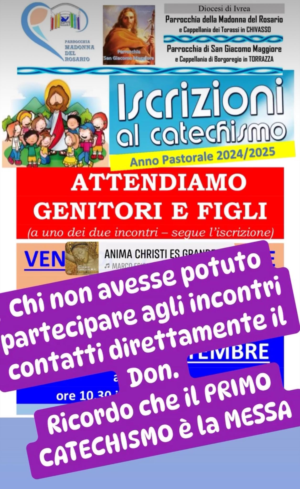 Attenzione per le Iscrizioni al Catechismo Anno Pastorale 2024 -2025 Condividi: Fai clic per condividere su X (Si apre in una nuova finestra) X Fai clic per condividere su Facebook (Si apre in una nuova finestra) Facebook Mi piace Caricamento... I commenti sono chiusi.