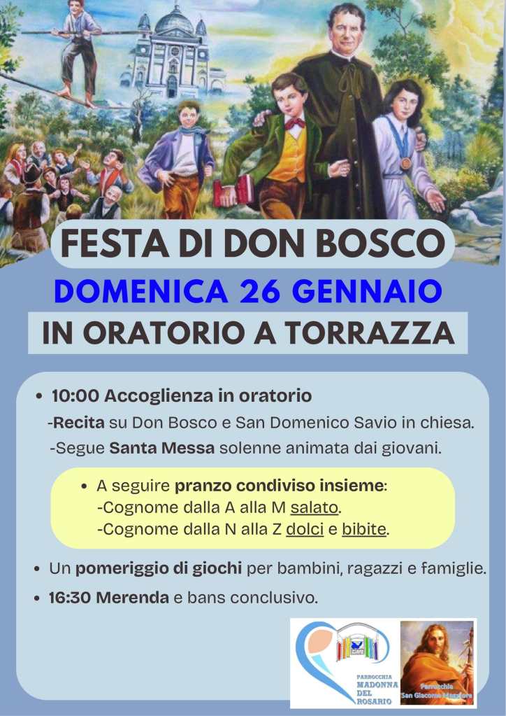 Festa di Don Bosco 2025 -“ANNULLATA”- Condividi: Fai clic per condividere su X (Si apre in una nuova finestra) X Fai clic per condividere su Facebook (Si apre in una nuova finestra) Facebook Mi piace Caricamento... I commenti sono chiusi.