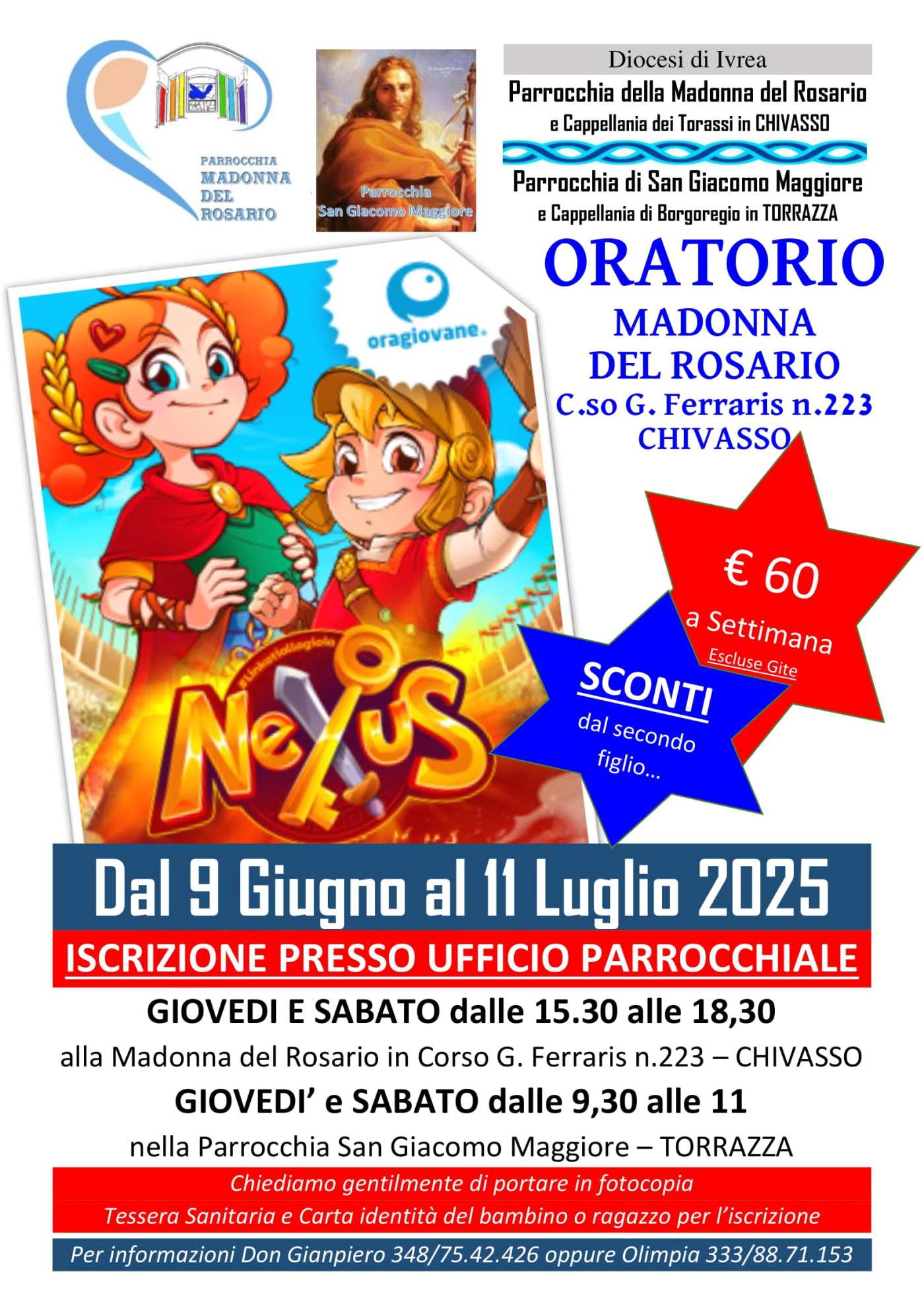 Invitiamo i Genitori, a recarsi presso gli Uffici Parrocchiali di: ” CHIVASSO e TORRAZZA P.TE” per effettuare l’iscrizione all’ Oratorio Estivo . Inoltre ricordiamo di portare ” COPIA CARTA IDENTITA’ e CODICE FISCALE – Fronte e Retro Validi del Bambino/a e Quota richiesta. Grazie per la collaborazione … Vi aspettiamo numerosi!!!