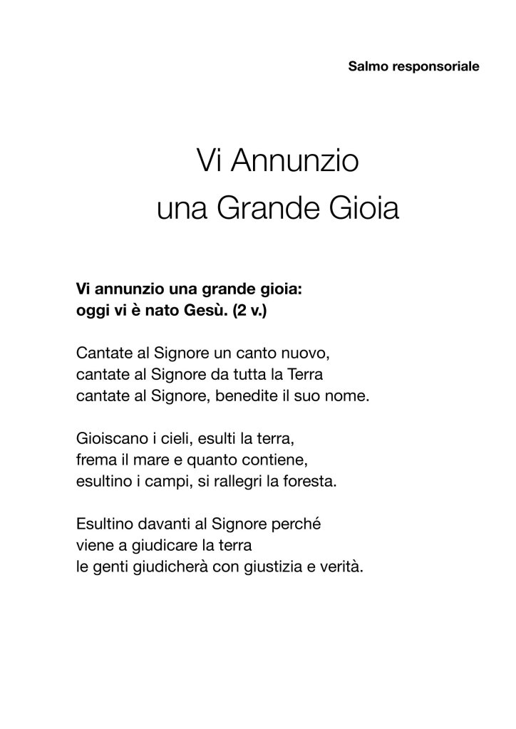 Canto: Vi annunzio una Grande Gioia 25/12/2023 – Vi annunzio una Grande Gioia Condividi: Fai clic per condividere su X (Si apre in una nuova finestra) X Fai clic per condividere su Facebook (Si apre in una nuova finestra) Facebook Mi piace Caricamento...