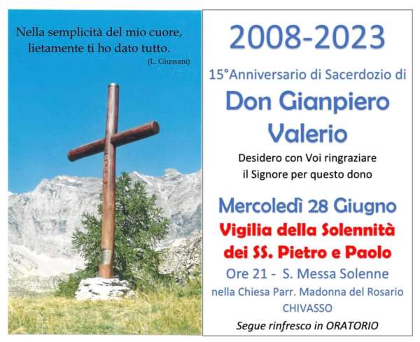 Continua a leggere “15o Ann. Sacerdozio Don Gianpiero – 28/06/2023”