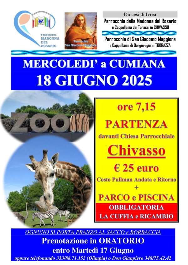 Invitiamo i Genitori, a recarsi presso gli Uffici Parrocchiali di: ” CHIVASSO e TORRAZZA P.TE” per effettuare l’iscrizione all’ Oratorio Estivo . Inoltre ricordiamo di portare ” COPIA CARTA IDENTITA’ e CODICE FISCALE – Fronte e Retro Validi del Bambino/a e Quota richiesta. Grazie per la collaborazione … Vi aspettiamo numerosi!!!
