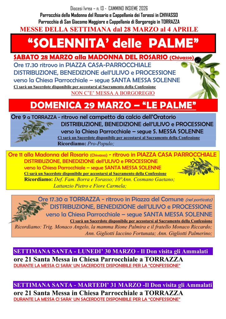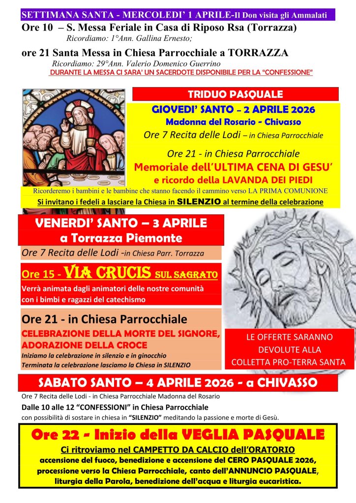 Ore 18.00 a CHIVASSO – Ore: 20.30 BORGOREGIO