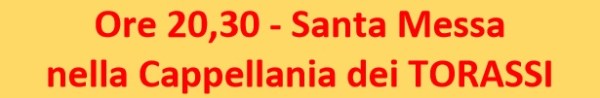 Variato orario Pre-Festivo / Sabato nella Cappellania dei Torassi dalle ore 20 alle ore 20,30 .